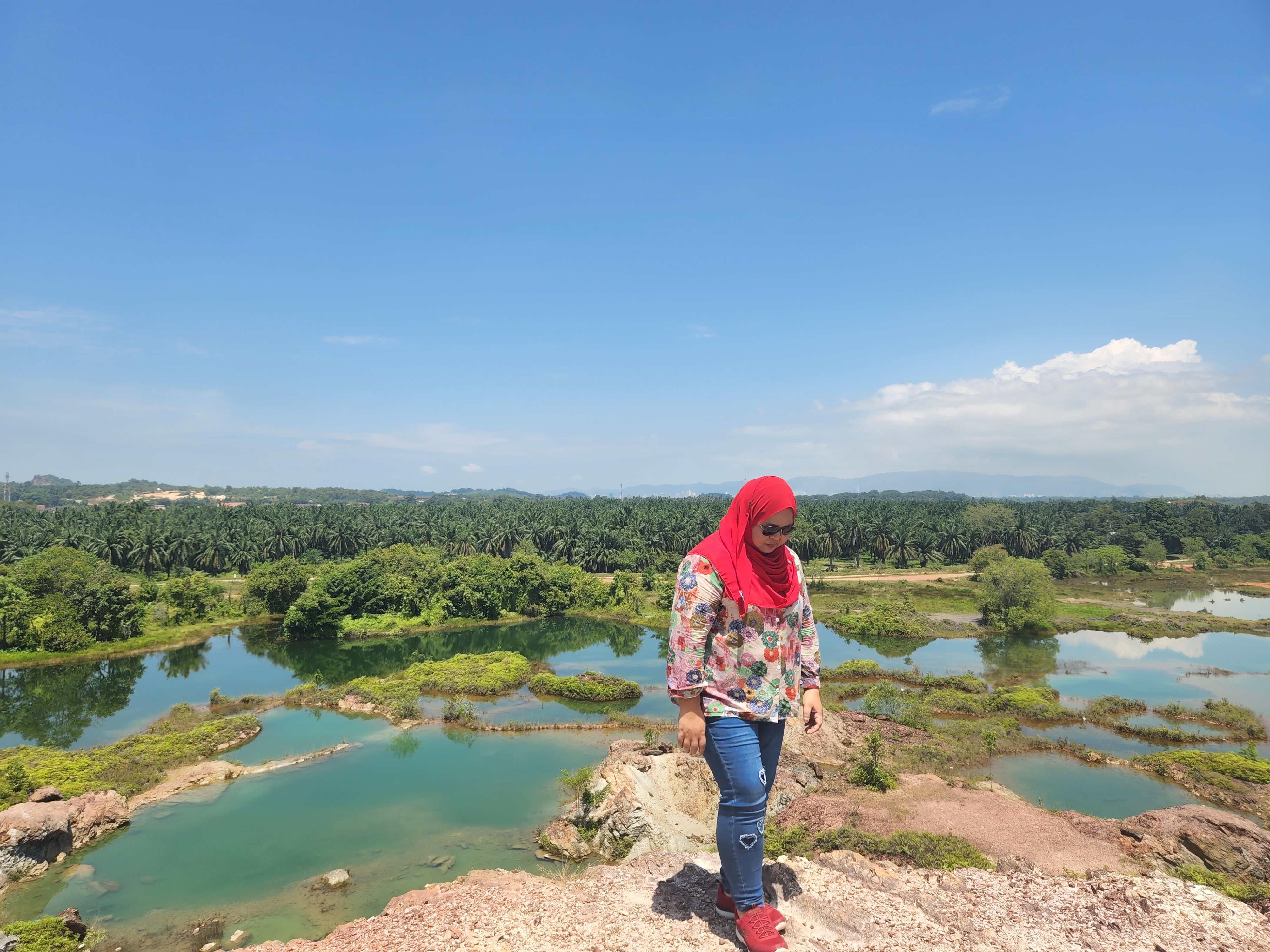 tapi bila sampai atas tu dan tengok view dia, cepat hilang mengah kau tadi...sebab sibuk nak ambil gambar...cantik!nampak kolam kolam bekas lombong kat bawah tu dengan air menghijauuu!cuaca plak cantik panas memang lagi lawa laaa kan pemandangan dari atas Frog Hill tu...tak sesia lalu jalan off road dan mendaki ni tau...hehehe cumanya kat atas ni panas la takde pokok sangat...hahaha so takleh duk lelama sangat...rentung rasa kulit...